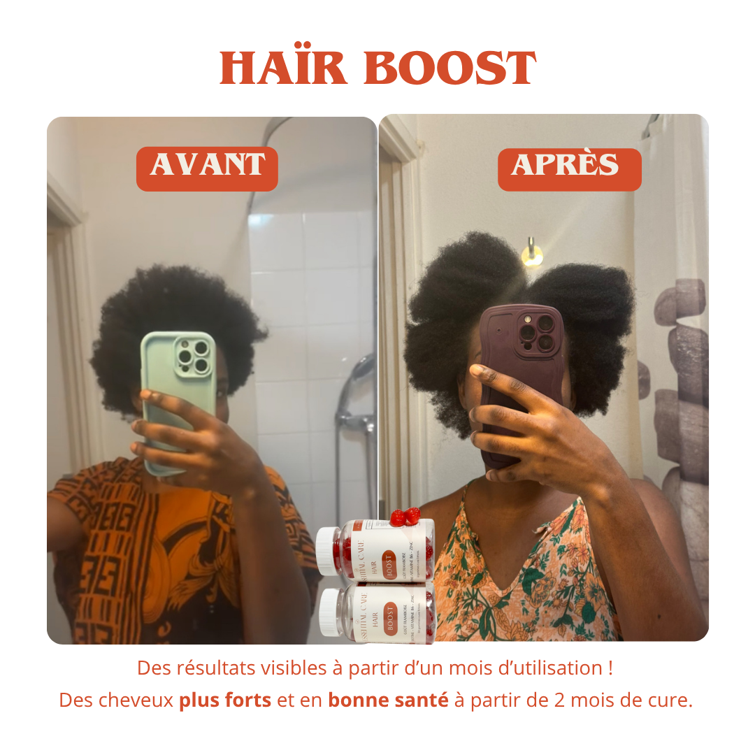 Accélérez votre croissance capillaire et renforcez vos ongles avec les Gummies Pousse de Cheveux et Ongles HAIR BOOST. Avec des vitamines et nutriments essentiels formulés scientifiquement pour améliorer la santé des cheveux et des ongles, ces gummies vous aideront à atteindre des résultats visibles et durables.
