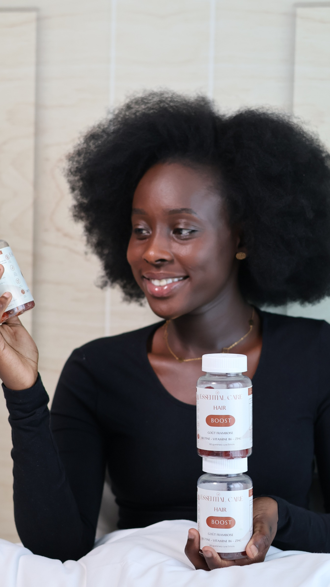 Accélérez votre croissance capillaire et renforcez vos ongles avec les Gummies Pousse de Cheveux et Ongles HAIR BOOST. Avec des vitamines et nutriments essentiels formulés scientifiquement pour améliorer la santé des cheveux et des ongles, ces gummies vous aideront à atteindre des résultats visibles et durables.