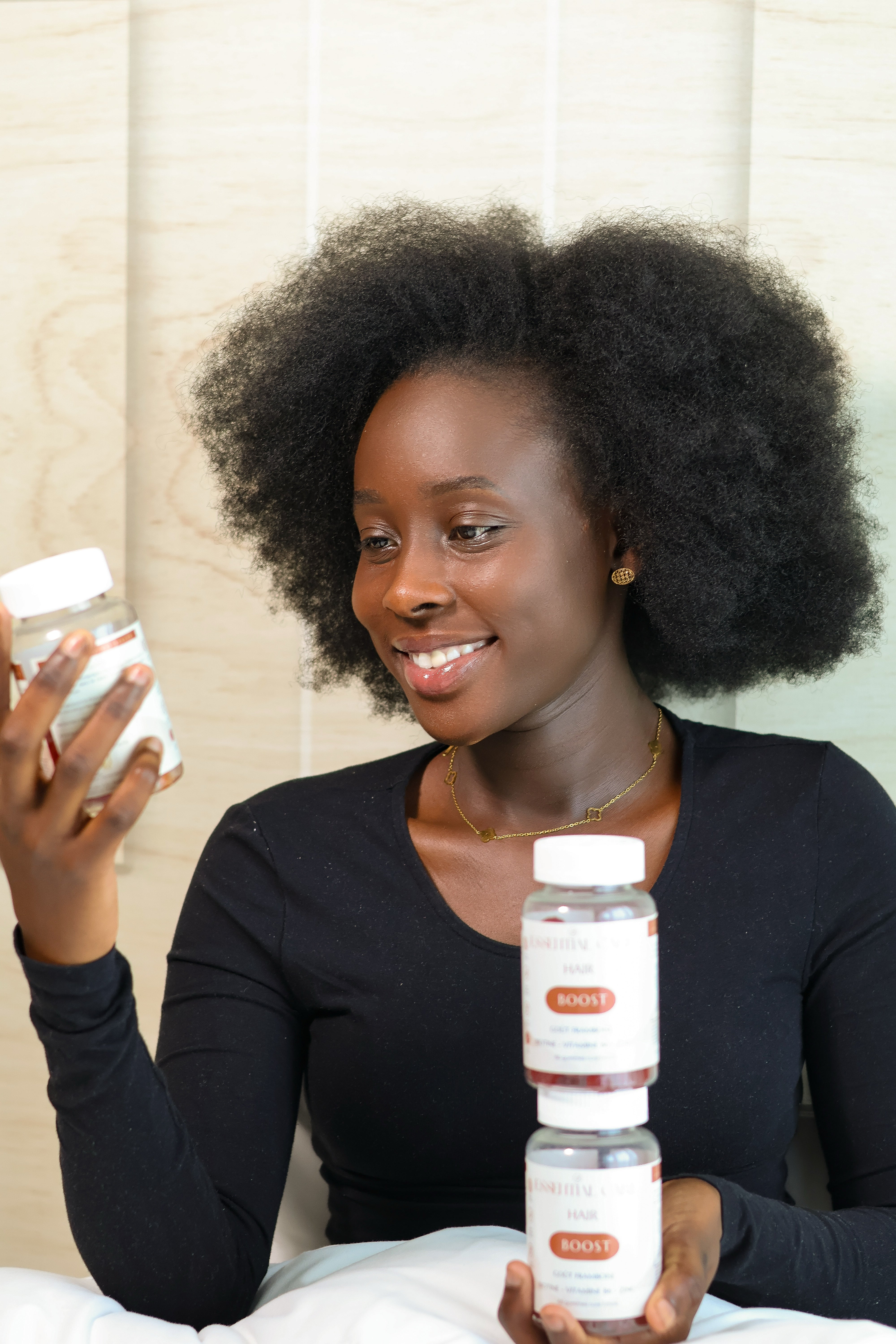 Hair Boost est efficace sur tous les types de cheveux: crépus, bouclés, ondulés, lisses, fins ou épais.